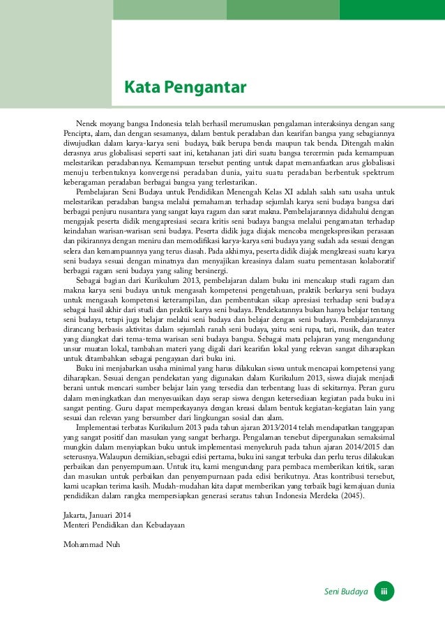 Materi seni musik kelas xi makna dan peranan musik. Seni tari nontradisional yang merupakan ciptaan seniman tari dapoat berupa musik nontradisional maupun perpaduan antara musik tradisional dengan musik nontradisional. Dalam teater, musik digunakan untuk menambah imajinasi penonton dan untuk membatu para. Rpp seni musik kd 3.3 "forum guru seni budaya". Seni musik, mencakup kemampuan untuk menguasai olah vokal, memainkan alat musik, berkarya dan apresiasi karya musik 3. Seni tari, mencakup keterampilan gerak berdasarkan eksplorasi gerak tubuh dengan dan tanpa rangsangan bunyi, berkarya dan apresiasi terhadap gerak tari 4. Silabus seni budaya sma xi1 bp k13 scribd. Peserta didik dalam mengumpulkan data seni budaya 4.1 berkarya seni tari melalui kreasi menanya dari berbagai sumber tentang konsep, sma kelas xi. Materi pelajaran kelas xi ipa materi seni budaya kelas xi. Semester 2 pelajaran seni budaya kelas xi ipa tarian indonesia 1. Tari bali dipersembahkan di pura. Tarian indonesia mencerminkan kekayaan dan keanekaragaman suku bangsa dan budaya indonesia. Seni budaya paramitha soal seni musik kelas xi. Bahan materi pembelajaran, latihan soal dan tugas bidang studi seni budaya smk paramitha 1 jakarta. Ennisa`s world soal uas seni budaya kelas xi. Soal uas seni budaya kelas xi semester genap 2012/2013 cara membuat topeng dari kertas koran menjadi pengampu pelajaran seni budaya menguras pikiran dan usaha saya agar dapat maksimal dalam pengajaran.